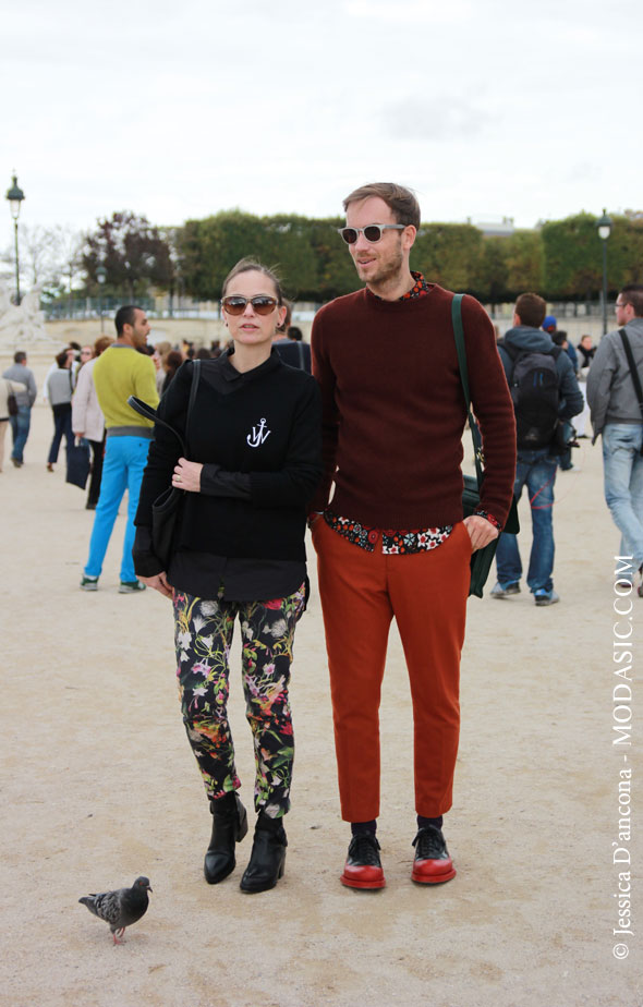 Femme/Homme Dans la rue … Jardin des Tuileries, Paris Posté dans 7 octobre 2012 6 Comments Par Jess Jess Vous aimerez aussi Un petit air rétro … Village Saint Paul, Paris 18 janvier 2013 Dans la rue … Rue Quincampoix, Paris 14 mai 2012 Dans la rue … Boulevard Malesherbes, Paris 26 juillet 2012 6 Commentaires Répondre Okhun 7 octobre 2012 at 19 h 23 min Un joli couple joliment assortis ! Répondre Mademoiz'L 7 octobre 2012 at 21 h 07 min Joli couple bien looké 😉 Répondre Christeen 8 octobre 2012 at 5 h 21 min Love this pics great ! Répondre Tiny 8 octobre 2012 at 7 h 05 min J’adore comme ils sont habillés ! Trop beaux ! ++1 pour le carrot paint fleuri ++1 pour la chemise fleurie ++1 pour les derbies à tête chercheuses lol Et oui à Paris il y a des pigeons … 🙂 Répondre Léa 8 octobre 2012 at 11 h 48 min super original j’adore! Répondre Audrey 9 octobre 2012 at 13 h 13 min C’est mignooon ils sont assortis 🙂 ! Jolie photo 😉 Bisous, Audrey http://www.audreyrobert.blogspot.com Laisser une commentaire Annuler la réponseNom * E-mail * Site web Enregistrer mon nom, mon e-mail et mon site dans le navigateur pour mon prochain commentaire. Code Anti-spam *